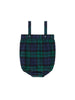 The Filada Baby Romper Dungarees from La Coqueta are a timeless investment for the festive season, woven from heavyweight polyester decorated with a charming tartan in tones of navy and forest green. This unisex one-piece features a raised waist and knotted leather button fastenings on the straps, with buttons at the crotch and back for easy changing when out and about. It has a relaxed, roomy bubble silhouette that allows for freedom of movement and can be layered over body vests and baby shirts, with knitwear for extra warmth.