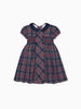 Embrace the spirit of the season with the timeless allure of tartan, its rich colour palette a quintessential nod to the festive months. La Coqueta's Arcadia Girl Hand-Smocked Dress is an iconic piece featuring a luxurious blend of burgundy and navy blue. Crafted from a silky cotton blend that's not only machine washable but also breathable and gentle on delicate skin, this dress ensures your little girl stays cool and comfortable all season long. The bodice is elegantly shirred at the waist, adorned with intricate honeycomb smocking and contrasting embroidery along the empire line waist, all meticulously completed by hand—a process that can take up to seven hours per dress. Thoughtful details like the short capped sleeves, a long floaty skirt fully lined with pure cotton, and a charming cotton velvet Peter Pan collar add to its statement appeal. The dress fastens at the back with delicate mother-of-pearl buttons and has an oversized self-tie bow to adjust for the perfect fit.