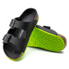 The legendary two-strap design from Birkenstock - the Arizona for kids. Iconic style complemented with the signature comfort of the Birkenstock footbed. Shown in black with tone on tone outsole.