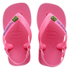Even the littlest family members can get in on this iconic style! The Baby Brazil sandal features Havianas signature textured sole and is finished with a contrast Havaianas logo and a rubber Brazilian flag on the straps. A soft elastic backstrap keeps tiny feet comfy and secure.