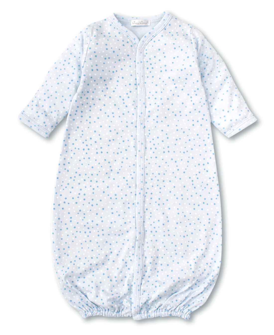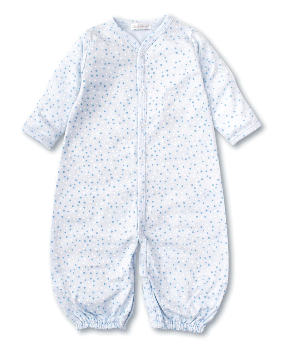 a fun star theme patterns this cozy gown for your baby boy. Snaps on legs allow for easy conversion to playsuit; made from the softest Pima cotton for ultimate comfort.